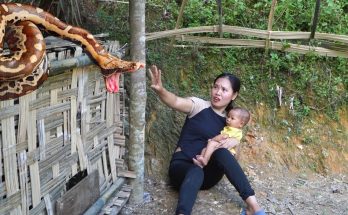 Grandma and her two children built a new house, pulled water to dig cassava, and cooked.