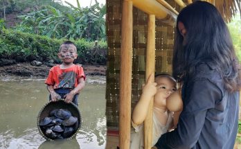Life of Mother’s and two Child orphaned, dig red arrowroot cook chicken porridge for child eat Read More
